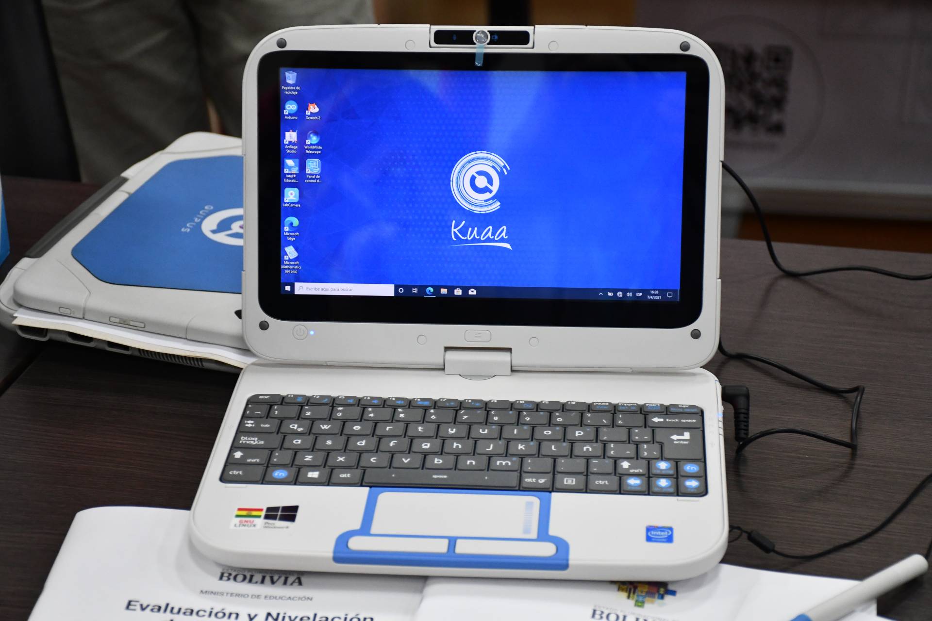 Según explicó el titular de Desarrollo Productivo, los equipos Classmate Kuaa son tabletas convertibles, con pantalla giratoria de 360 grados, que cuentan con procesador, pantalla táctil, cámara web y es resistente a líquidos, además cuenta con un importante material educativo.