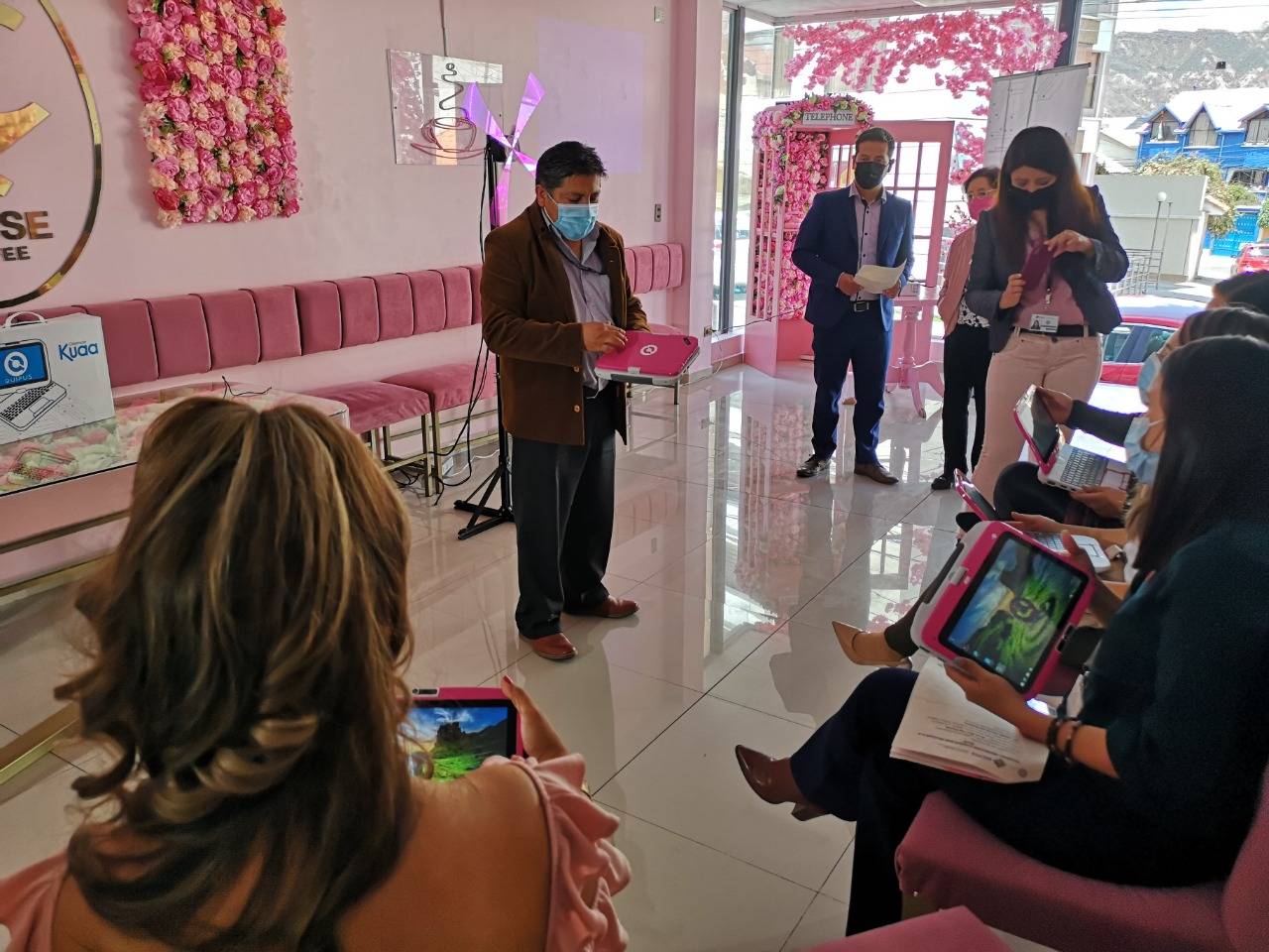 El evento se llevó a cabo en la cafetería temática Rosse ubicada en la zona de San Miguel, donde asistieron autoridades de instituciones como el Banco de Desarrollo Productivo (BDP), Banco Unión, la Agencia para el Desarrollo de la Sociedad de la Información en Bolivia y la Coordinadora General del Proyecto de Fortalecimiento de Organizaciones Sociales PROFOS.