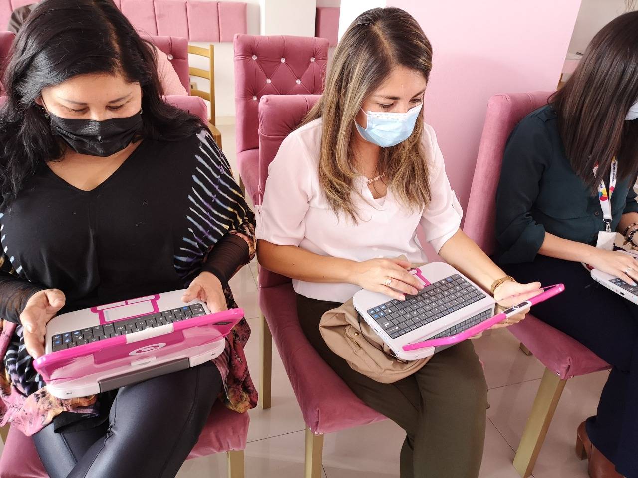 Quipus, La Paz, 25 de noviembre.- Hoy la Empresa Pública Quipus, bajo tuición del Ministerio de Desarrollo Productivo y Economía Plural, presentó oficialmente su computadora Classmate Kuaa edición rosa, conmemorando de esta manera El Día Internacional de la Eliminación de la Violencia contra la Mujer y como parte de una campaña que la estatal llevó a cabo esta semana, para concientizar a la población en torno a la violencia contra la mujer mediante mensajes y webinars informativos y formativos.